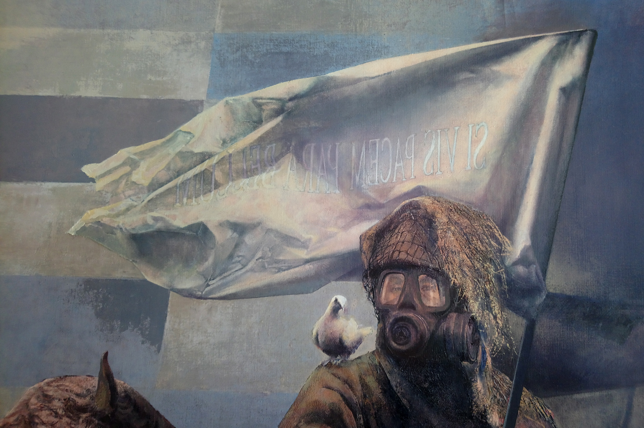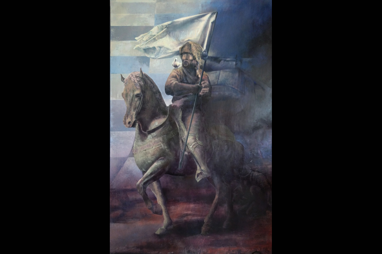 Se trata de una obra presentada al concurso convocado por el Ejercito de Tierra. No fue seleccionado. Representa a un altivo condotiero que provoca el desastre allí por donde pasa. La paloma de la paz observa asustada y el viento de la guerra ha vuelto la bandera.